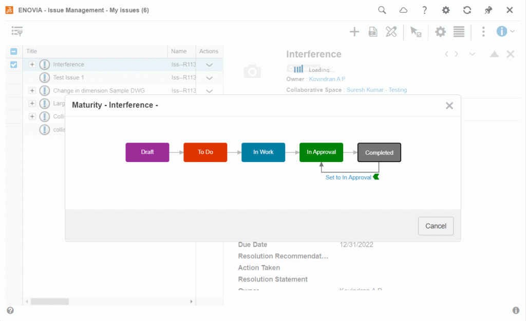 This issue Management app in 3DEXPERIENCE platform helps to capture, track and manage issue from identification to resolving it completely in a streamlined and simple set of process