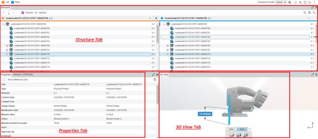 1. Enhanced Design Validation – Compare ensures that every modification in a design is intentional and aligns with engineering requirements. By visually inspecting differences, teams can reduce errors and maintain design integrity.